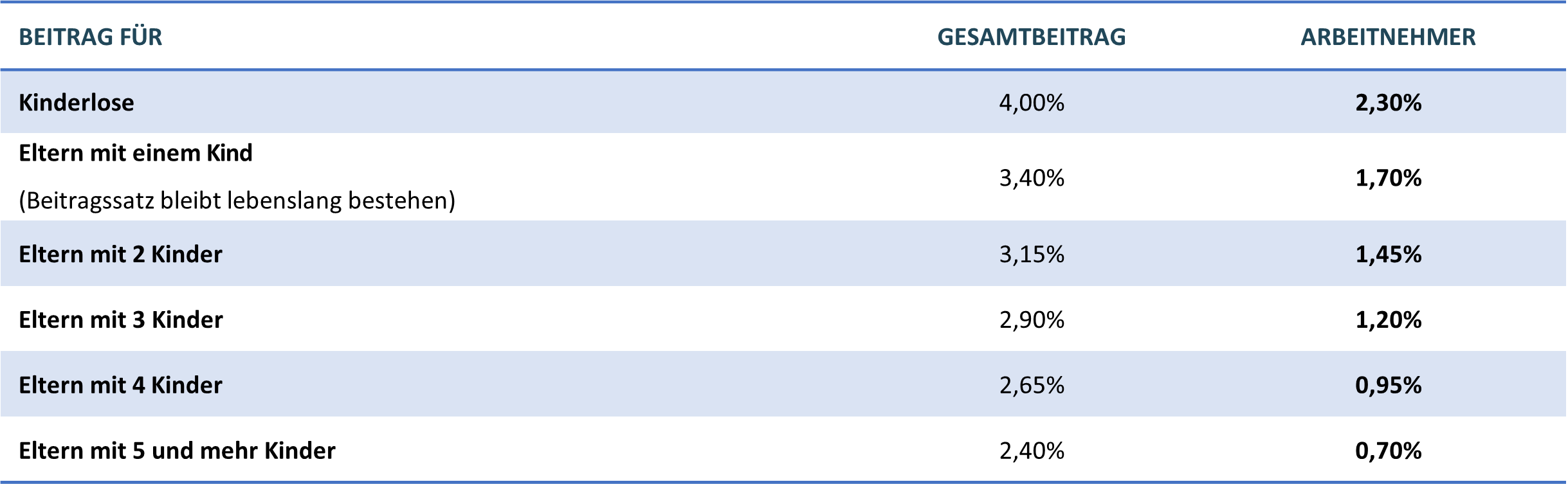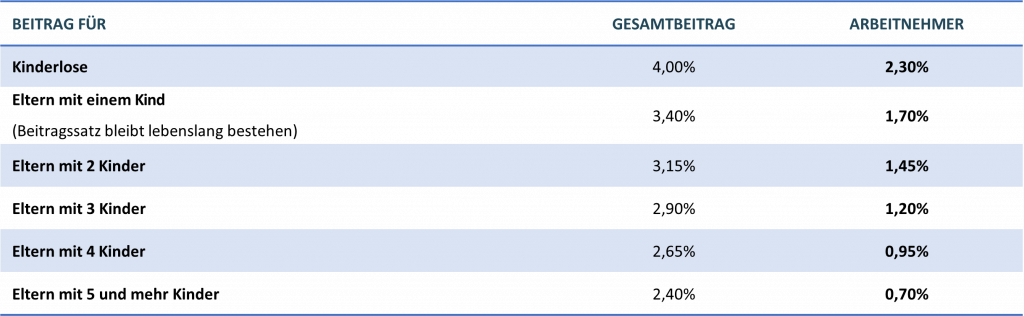Der Beitragssatz des Arbeitgebers zur Pflegeversicherung bleibt in jedem Fall gleich.